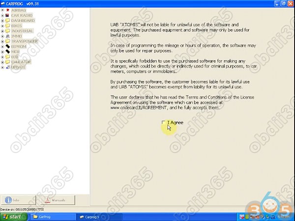 CarProg v10.93 operating system: Windows XP