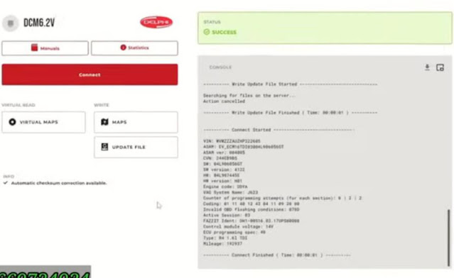 If DCM6.2V ECU crashed after OBD write, write goes to 100% but car does not start. You have to get a new ecu replaced.